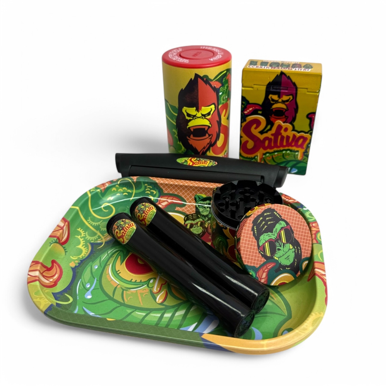 Небольшой но достаточно функциональный набор от известного бренда. В набор входит: трей, гриндер, контейнер для джоинта, гермитичный контейнер для хранения табака и машинка для самокруток и прочие акссесуары.